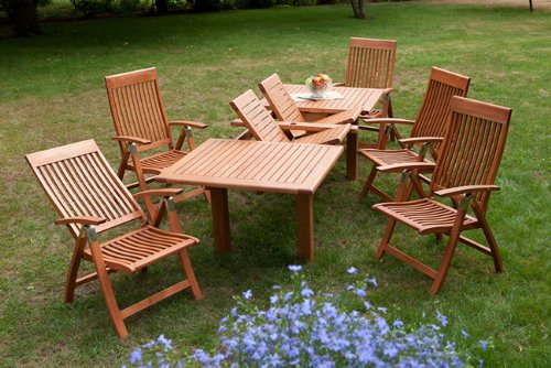 7-teilige Garnitur COMODORO aus Eukalyptus, 6x Hochlehner - Klappsessel, 1x Doppel-AZ-Tisch Testberichte (Details und Merkmale)