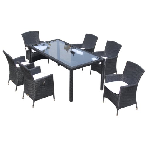 Lesen Sie mehr Details und Die hilfreichsten Kundenrezensionen über Ambientehome 63458AM 7-teilige Sitzgruppe, Essgruppe Ledo Gartenmöbel Polyrattanmöbel, schwarz hier klicken...!