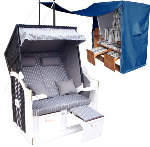Preisvergleich WOHNWERK Zweisitzer Strandkorb Modell Ostsee de Luxe - Nur diesen Monat! + Premium Schutzhülle + 2 Kissen + Versandkostenfrei (innerhalb Deutschlands)! zu verkaufen