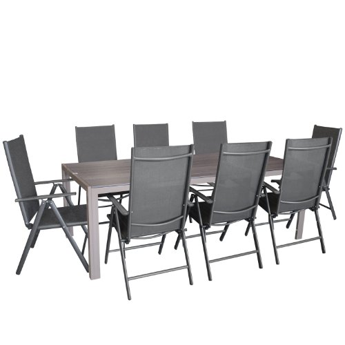 Lesen Sie mehr Details und Die hilfreichsten Kundenrezensionen über Gartengarnitur Alu/Non-Wood 205x90cm Hochlehner - 9tlg hier klicken...!
